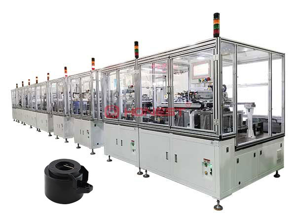 本生产线适用于汽车刹车阀爪极永磁同步电机组装,产线由多台设备组成,输送方式采用输送线+船板,呈“一”字型布局。产线主要由注塑前及注塑后二部分组成,主要包含骨架绕线、机壳组装、定子组装三大功能,工装定位、仿型设计,配置各种类型传感器,生产全过程监测,采用高精密检测仪器,并具备相应的提示报警机制。